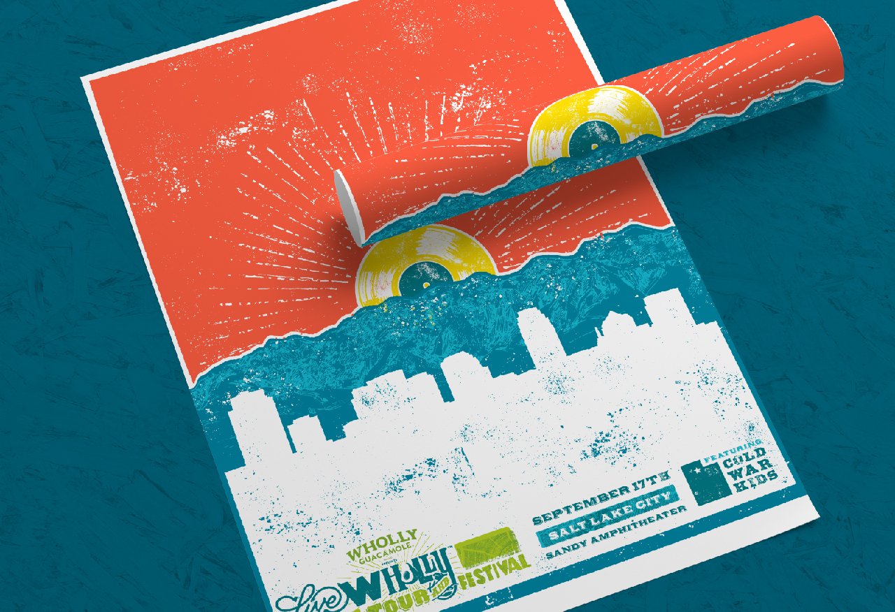 Wholly Guacamole was eager to shake things up, and shaking a tambourine or two seemed like a good way to start. To bring a tour and concert to life you need quite a few designed materials. Specifically: you'll need everything from the original identity and launch announcements to promotional posters, t-shirts and other swag, directional signage and stage banners.